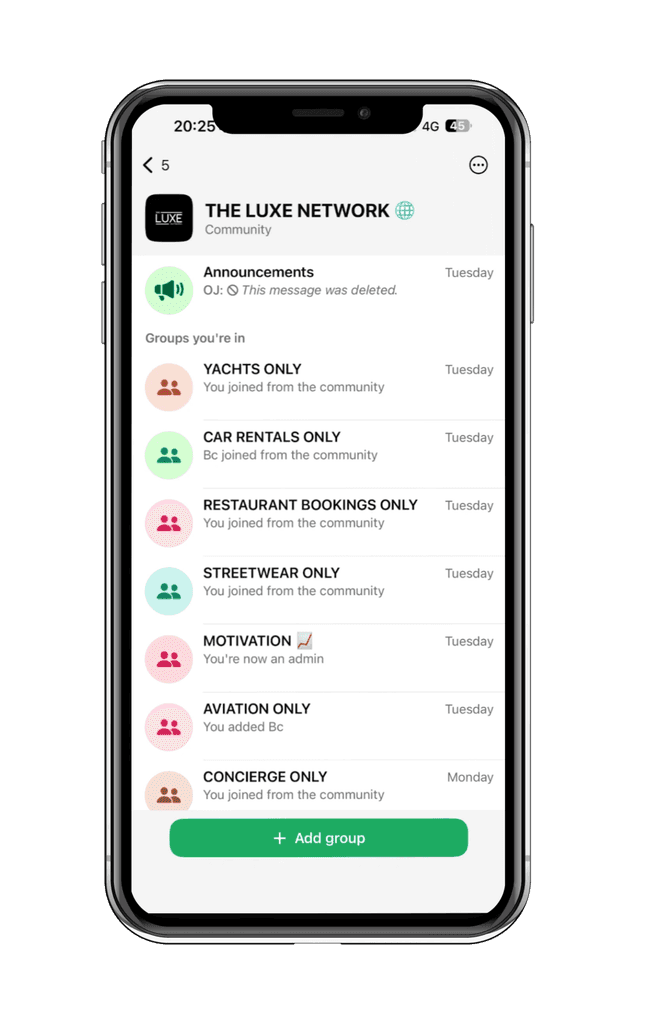 The Luxe Network connects entrepreneurs to verified suppliers, concierge partners, aviation insiders and mentorship across the UK, Europe & UAE. Trade pricing, rare allocations and real opportunities — all inside one private membership.